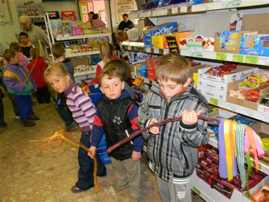 Paní Liščáková přinesla dětem sladkosti - koleda.